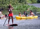 Jennifer Aniston - In Hawaii on a surf board in bkini top and shorts